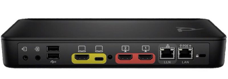 G62 hỗ trợ đa dạng cổng kết nối như HDMI in, HDMI out, USB, PoE+, LLN (Low Latency Network) để kết nối camera, microphone, màn hình hiển thị.
